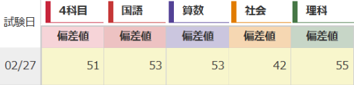 なんと、4科偏差値は4年ラストの公開模試で43を取った時以来の40台前半。